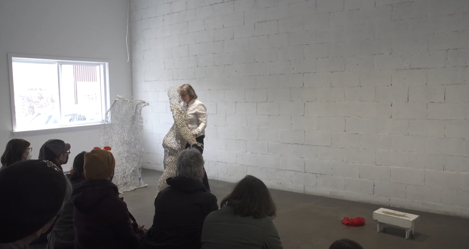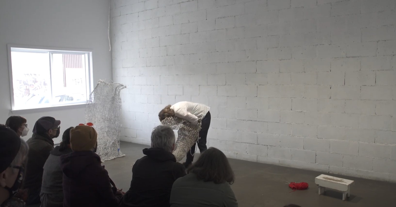 Hanging from a Thread is a sculpture and a performance created during the 2021, PHI Foundation Residency program in Montréal.