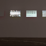 Les œuvres d’art dans Défaire le mot imprimé comprennent également des transformations de certaines des œuvres littéraires que j’estime le plus, comme Ulysse de James Joyce, Les vagues de Virginia Woolf et À la recherche du temps perdu de Marcel Proust. Transformer les pages de ces œuvres en tissages est une manière de rendre hommage aux écrits de ces auteurs et d’interpréter visuellement les histoires qu’ils et elles racontent. Ces romans m’intéressent particulièrement, car ils s’inspirent des arts textiles et y font référence.