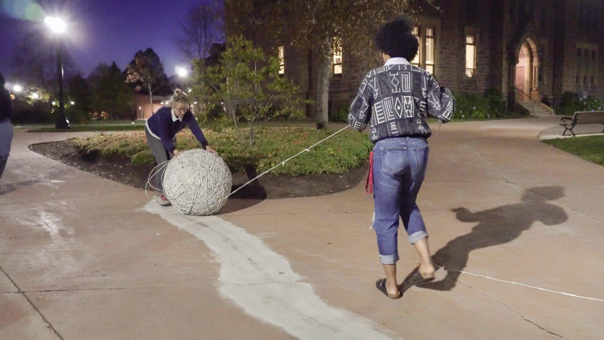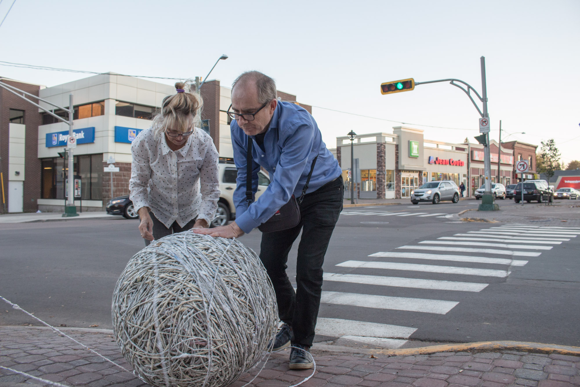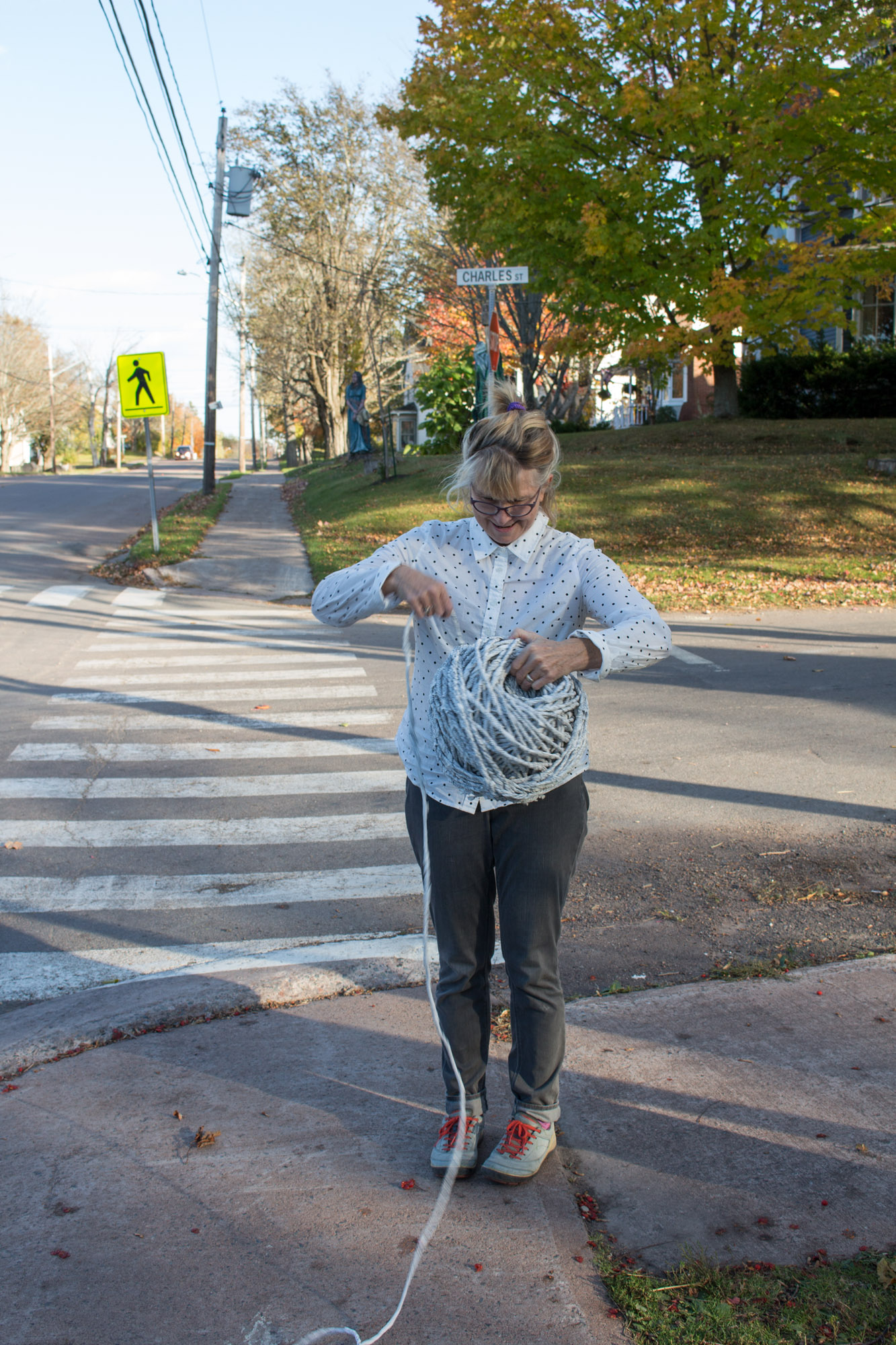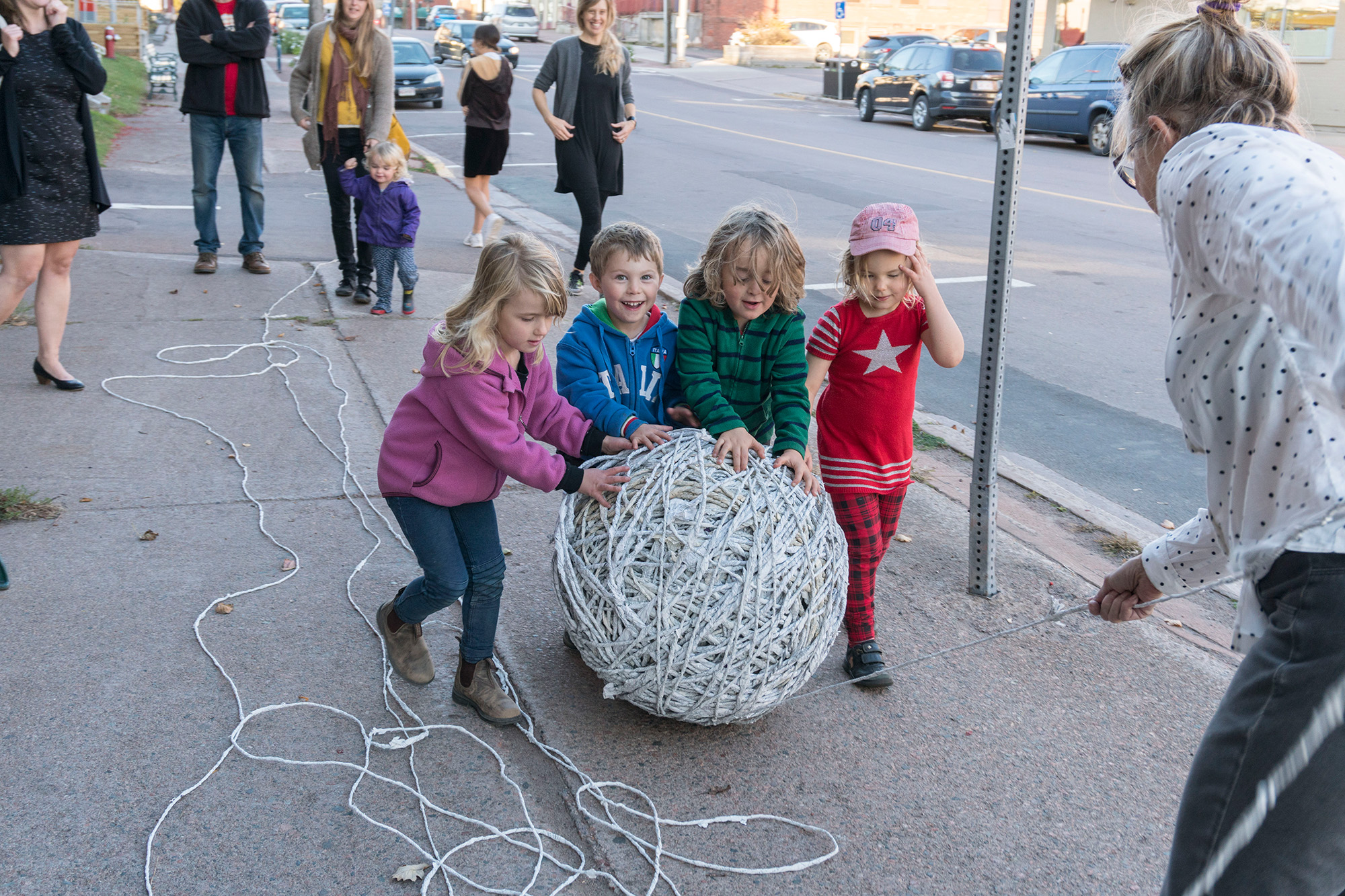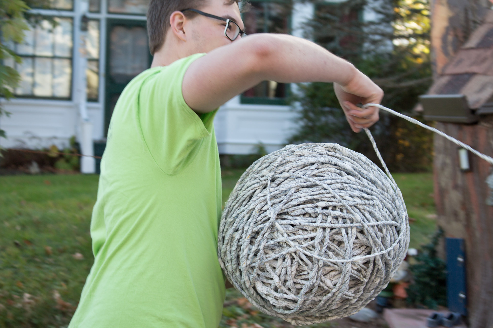 The act of taking apart publications, such as encyclopedias, dictionaries, atlases and religious texts, is a gesture towards undoing the long history of silencing women’s voices and the dominance of male discourse. It is a reminder, through spinning, knotting and weaving, of women’s silent contribution to history for over 20,000 years in an all too anonymous way. When a pile of dictionaries becomes a huge ball of thread that is unravelled through the streets, or paper cords spilling out from the broken hull of a beached boat, I seek to decentralize the power of texts, while emphasizing their materiality and the paper they are written on. When, in the work Hanging by a Thread, I crush a body made from the pages of the encyclopedia representing my father, I push back against the violence of patriarchy.