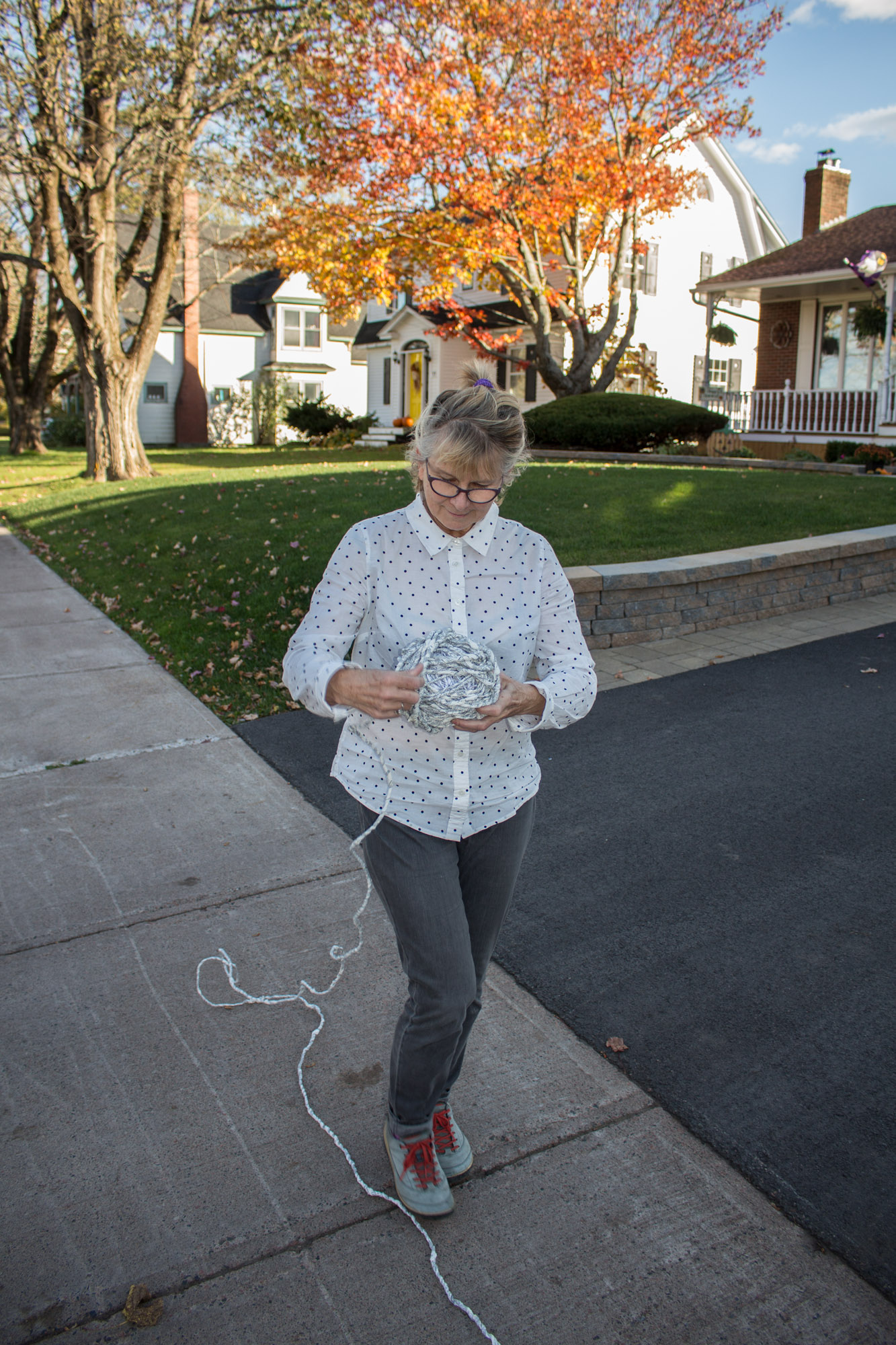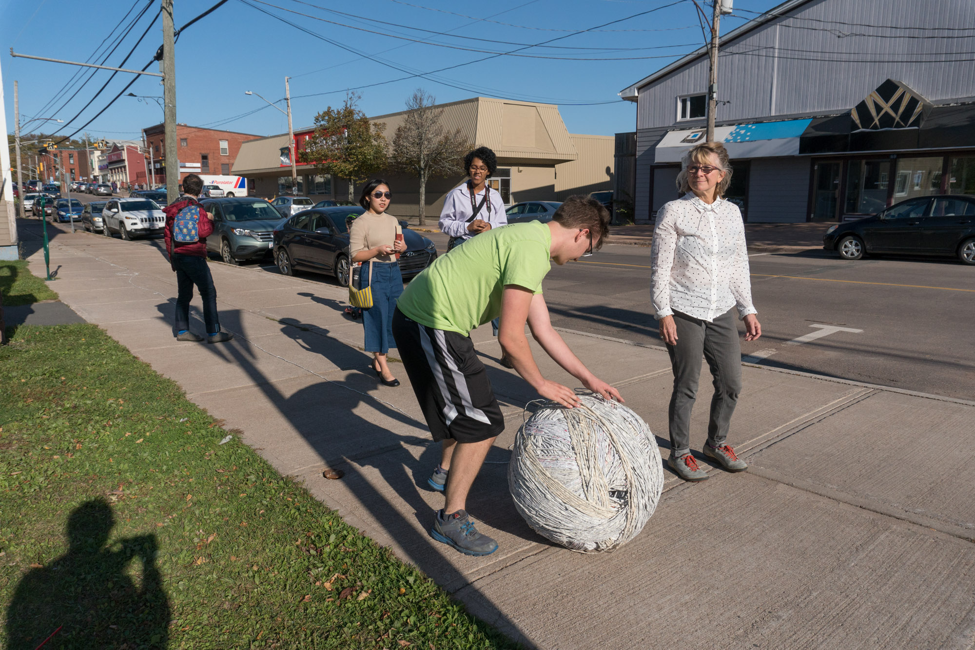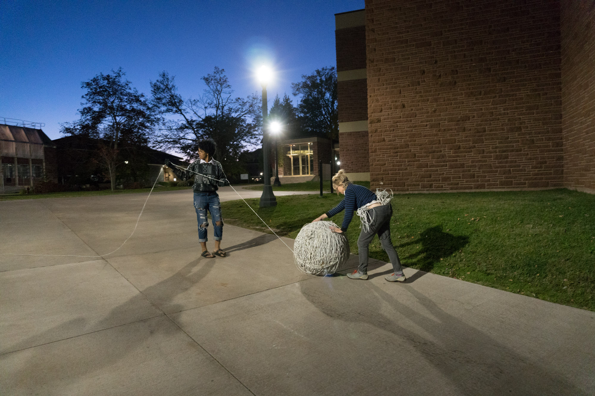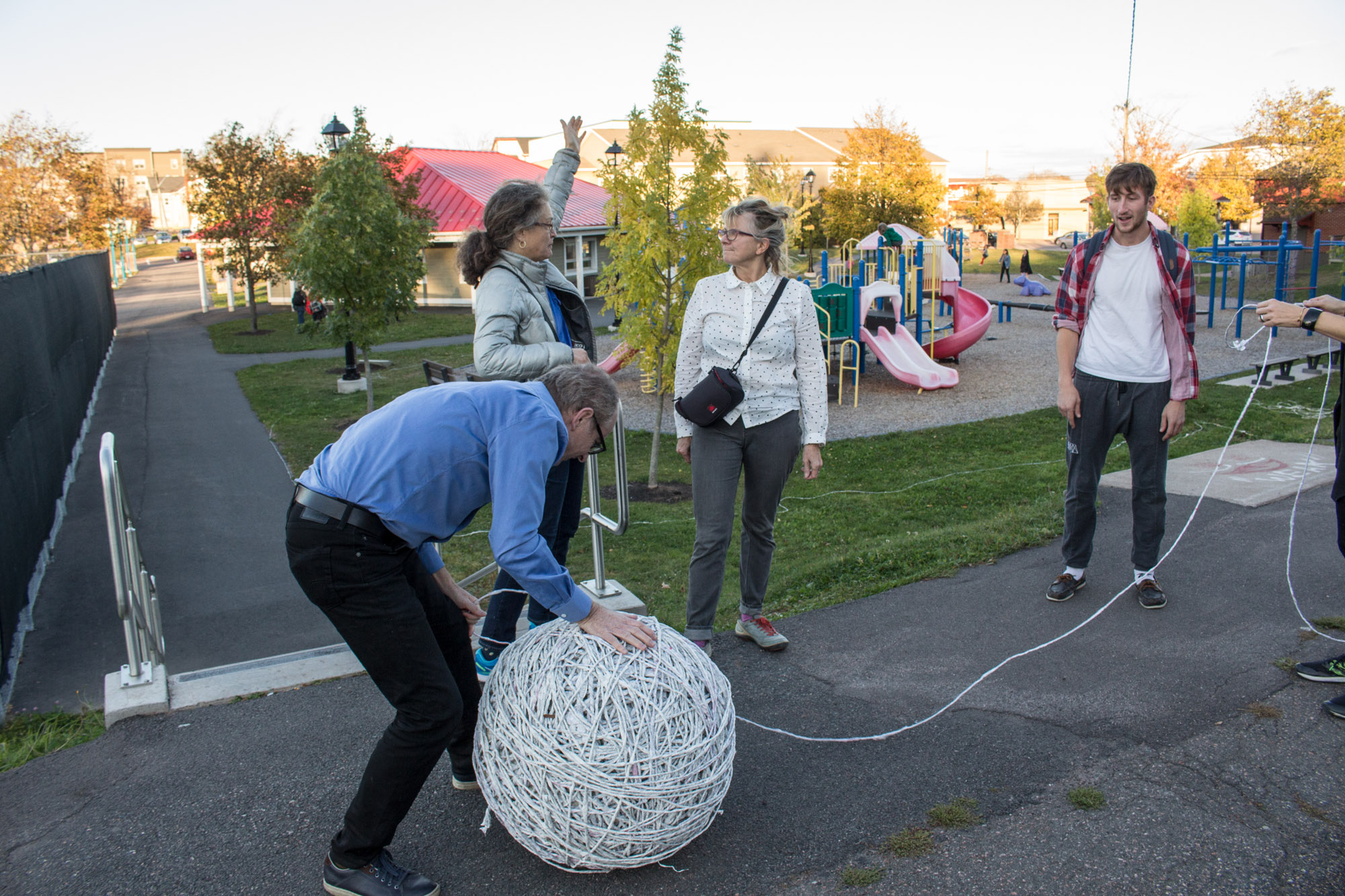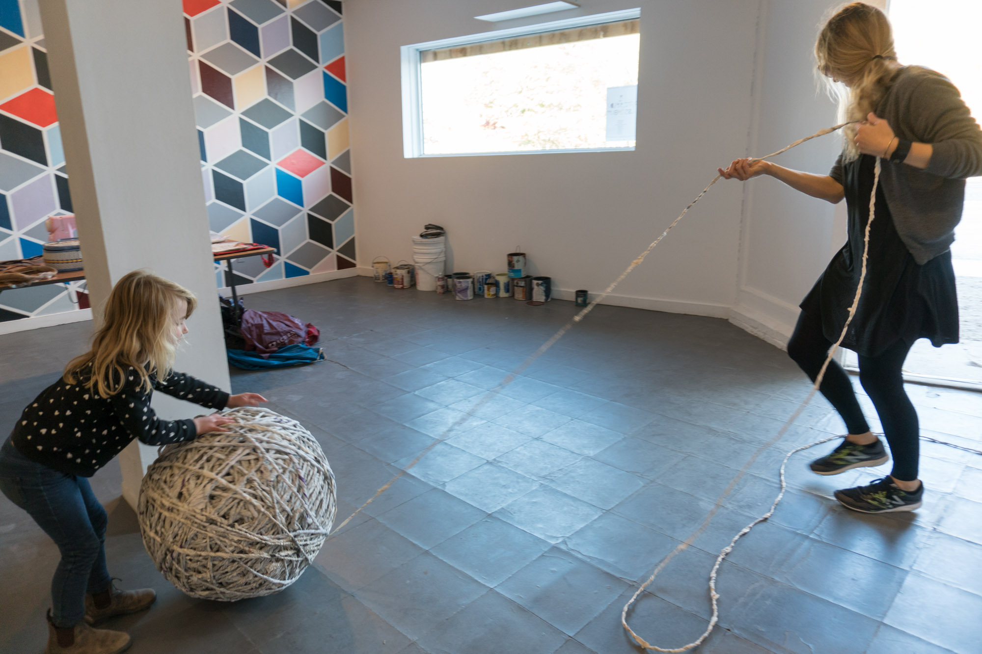 The act of taking apart publications, such as encyclopedias, dictionaries, atlases and religious texts, is a gesture towards undoing the long history of silencing women’s voices and the dominance of male discourse. It is a reminder, through spinning, knotting and weaving, of women’s silent contribution to history for over 20,000 years in an all too anonymous way. When a pile of dictionaries becomes a huge ball of thread that is unravelled through the streets, or paper cords spilling out from the broken hull of a beached boat, I seek to decentralize the power of texts, while emphasizing their materiality and the paper they are written on. When, in the work Hanging by a Thread, I crush a body made from the pages of the encyclopedia representing my father, I push back against the violence of patriarchy.