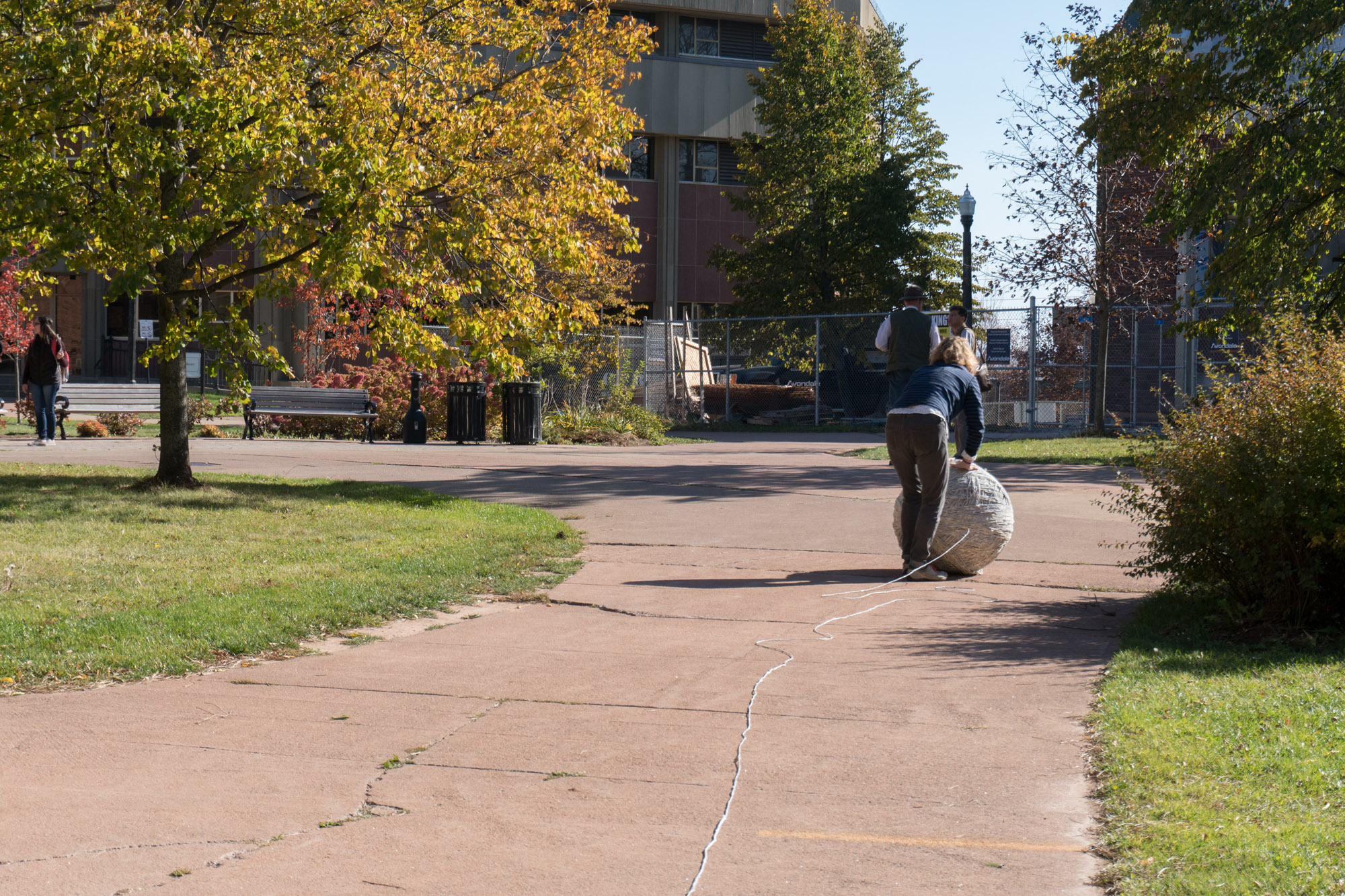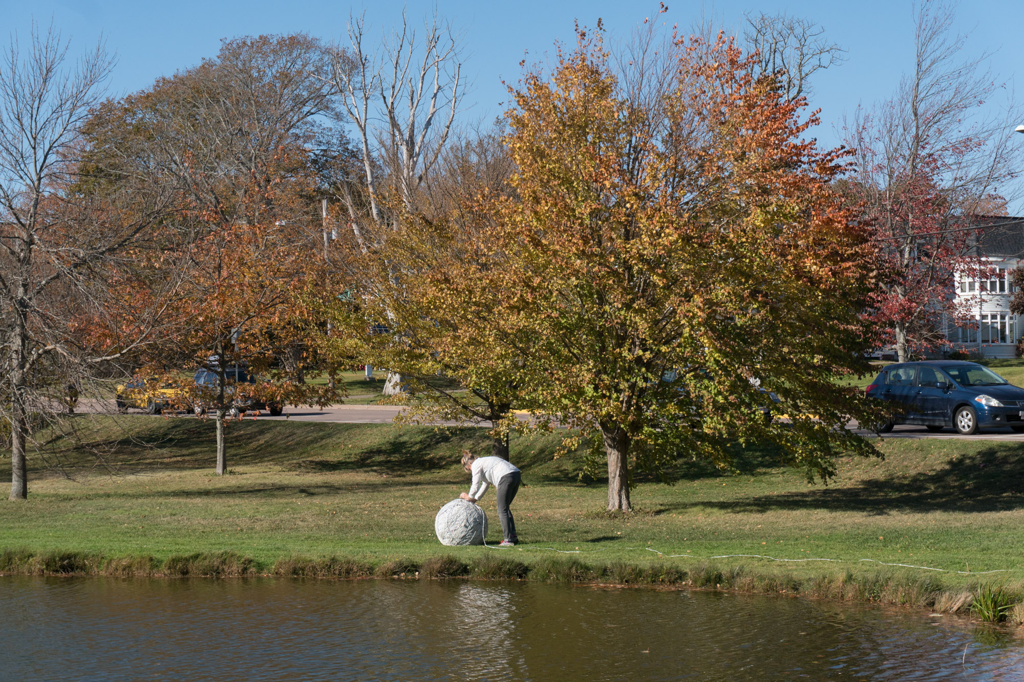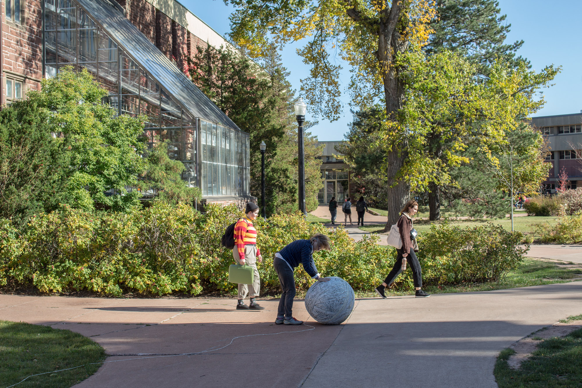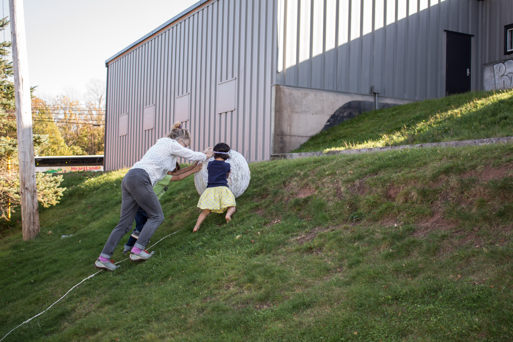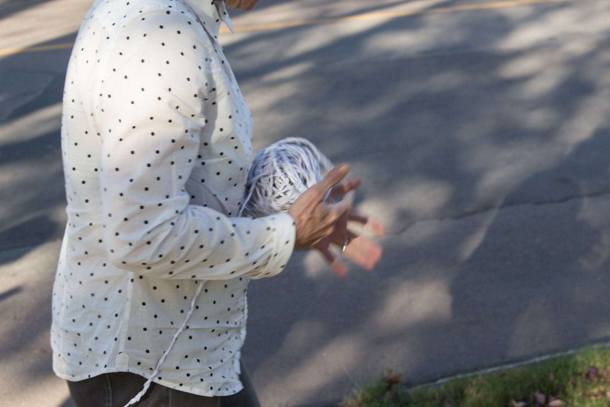 The act of taking apart publications, such as encyclopedias, dictionaries, atlases and religious texts, is a gesture towards undoing the long history of silencing women’s voices and the dominance of male discourse. It is a reminder, through spinning, knotting and weaving, of women’s silent contribution to history for over 20,000 years in an all too anonymous way. When a pile of dictionaries becomes a huge ball of thread that is unravelled through the streets, or paper cords spilling out from the broken hull of a beached boat, I seek to decentralize the power of texts, while emphasizing their materiality and the paper they are written on. When, in the work Hanging by a Thread, I crush a body made from the pages of the encyclopedia representing my father, I push back against the violence of patriarchy.
