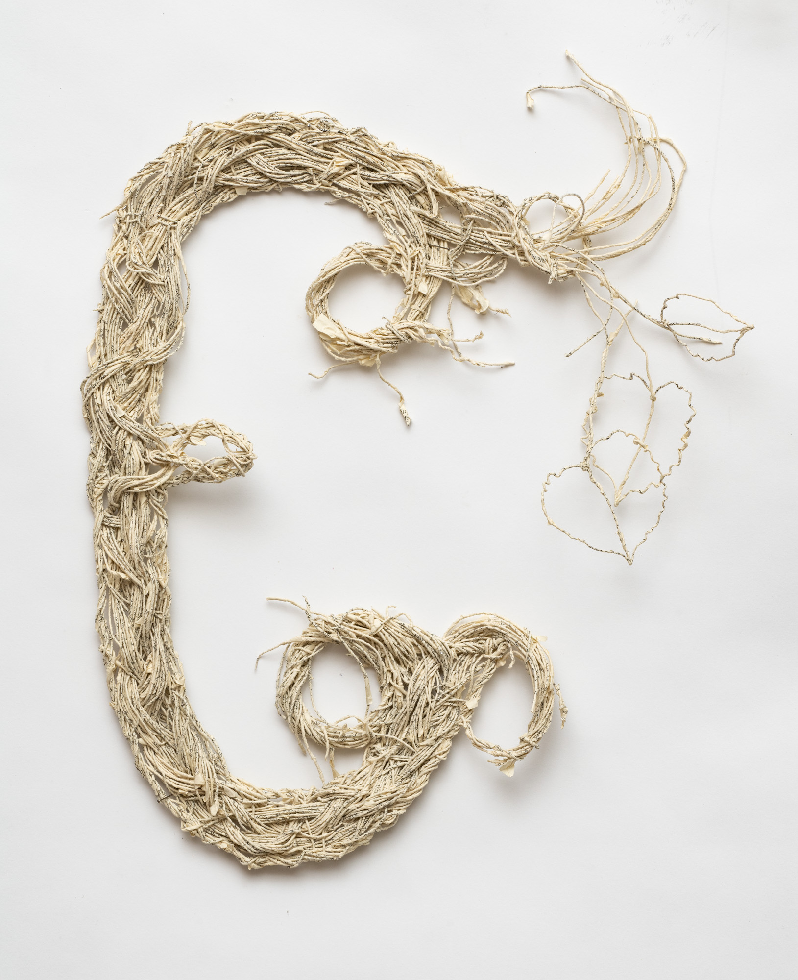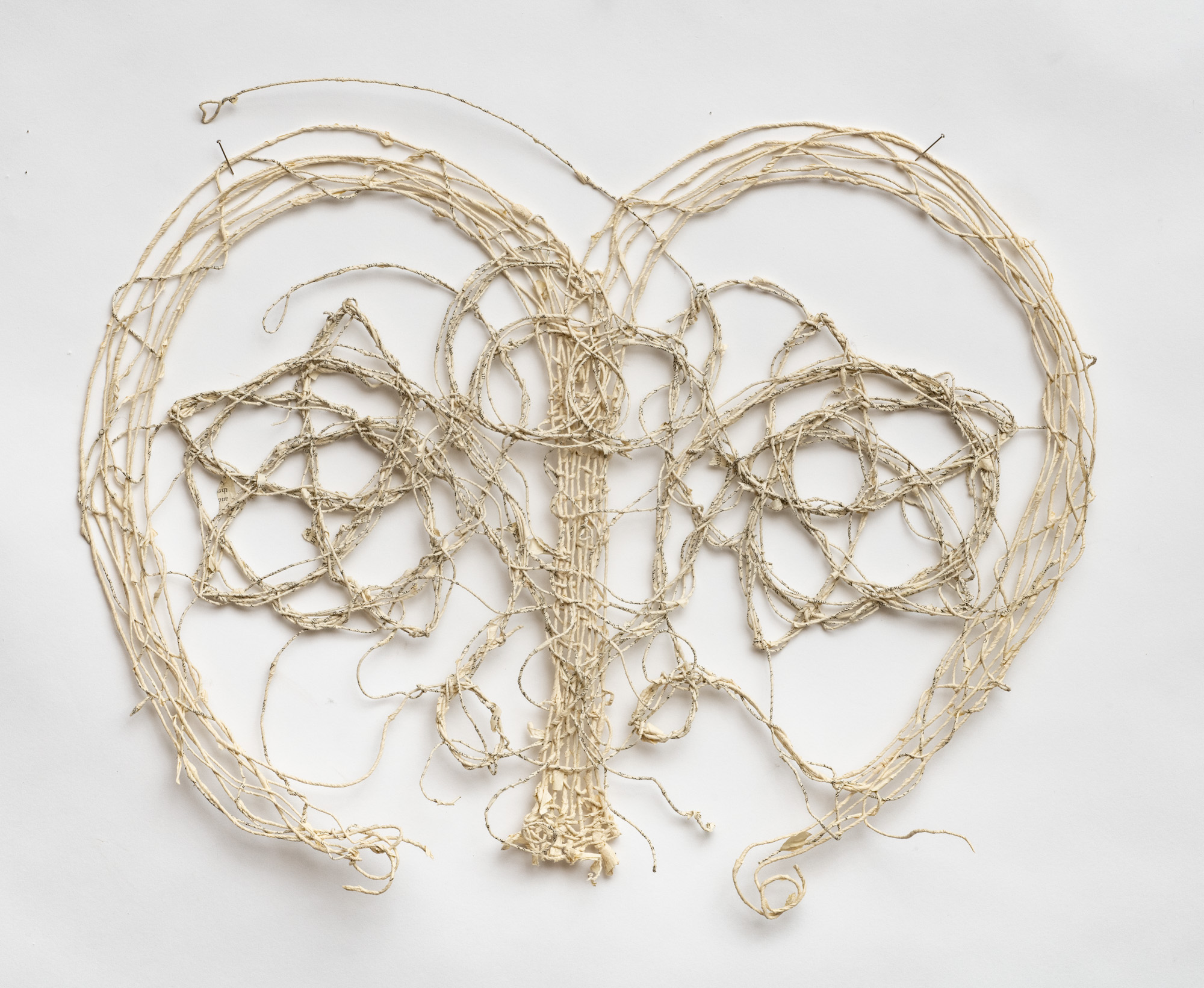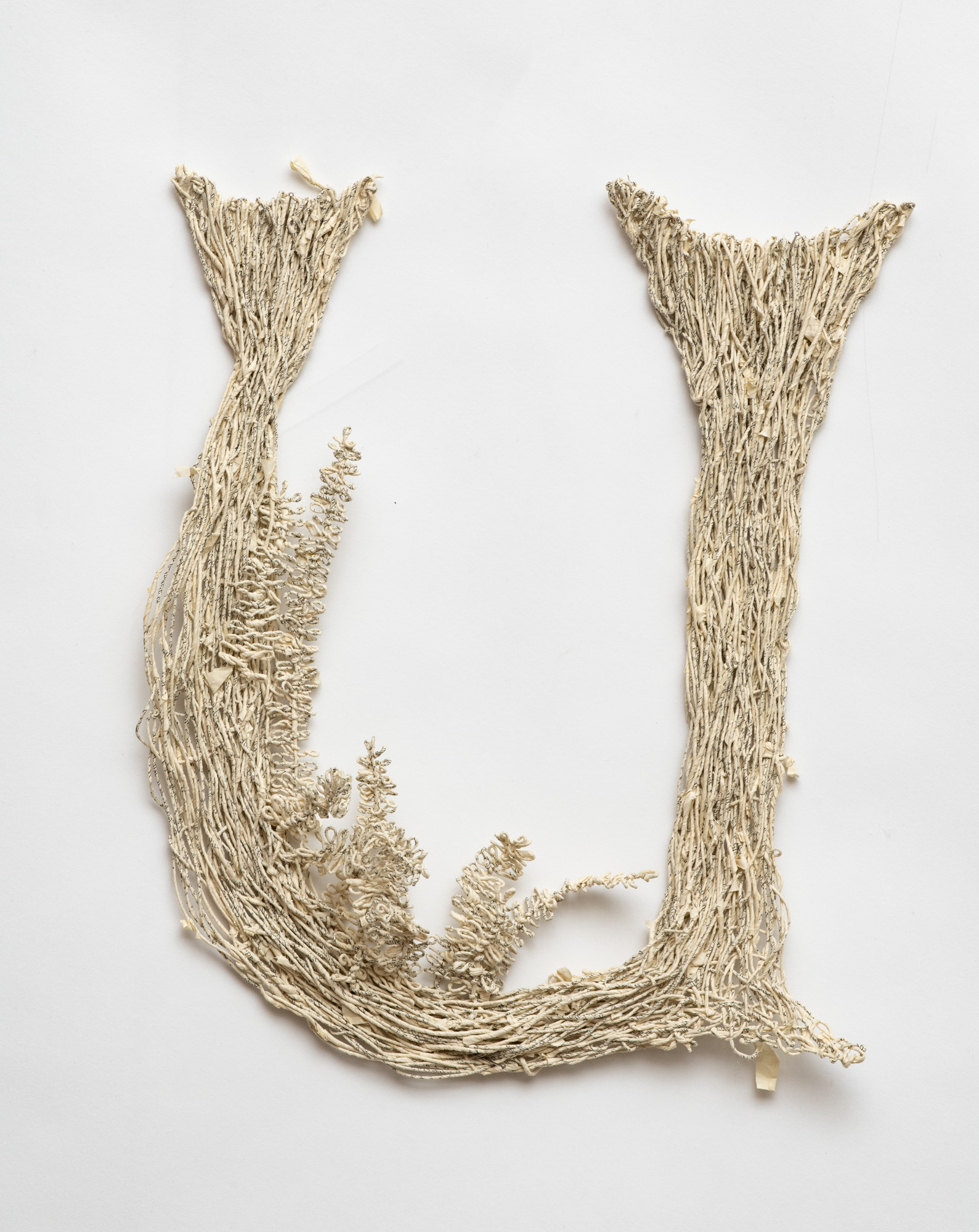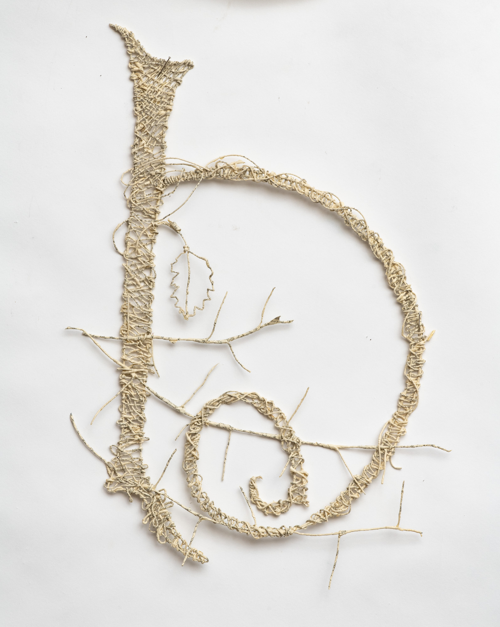 The sculptural works in Undoing the Printed Word use thread made from the pages of two distinct sources: reference books and classic works of fiction. My intentions behind using these sources differ: one a critique, the other an homage. All the works explore the possible forms that can be created by spinning, weaving and knotting these threads.