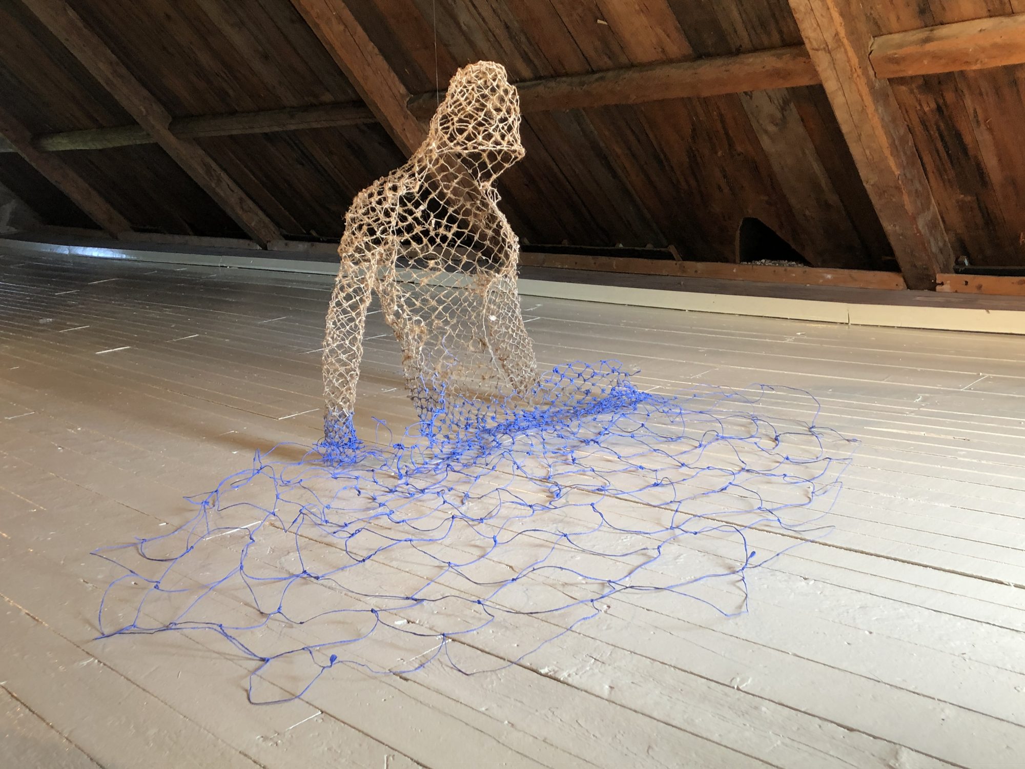 This video presents the work of the artists in the Biennale international du lin de Portneuf 2023 who exhibited in the Vieux Presbytère location. Karen Trask talks about her choice of materials and describes the process of making the work, she also explains the ideas she is exploring with her sculpture.