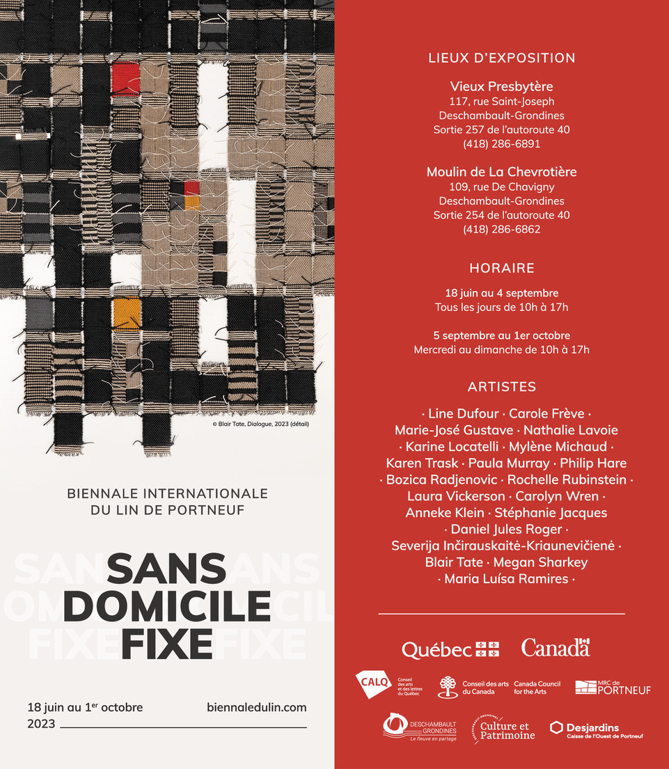 Exhibition review of Biennale international du lin de Portneuf : Sans domicile Fixe at Vieux Presbytère, June 18 2023 – October 1 2023.