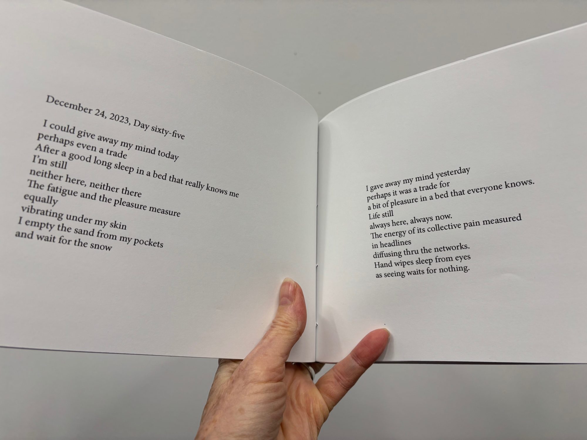 Pour ce projet, ils se sont enregistré-es en train de lire une sélection de leurs poèmes qui sont de discrètes et courtes réflexions à propos d’événements, petits et grands.