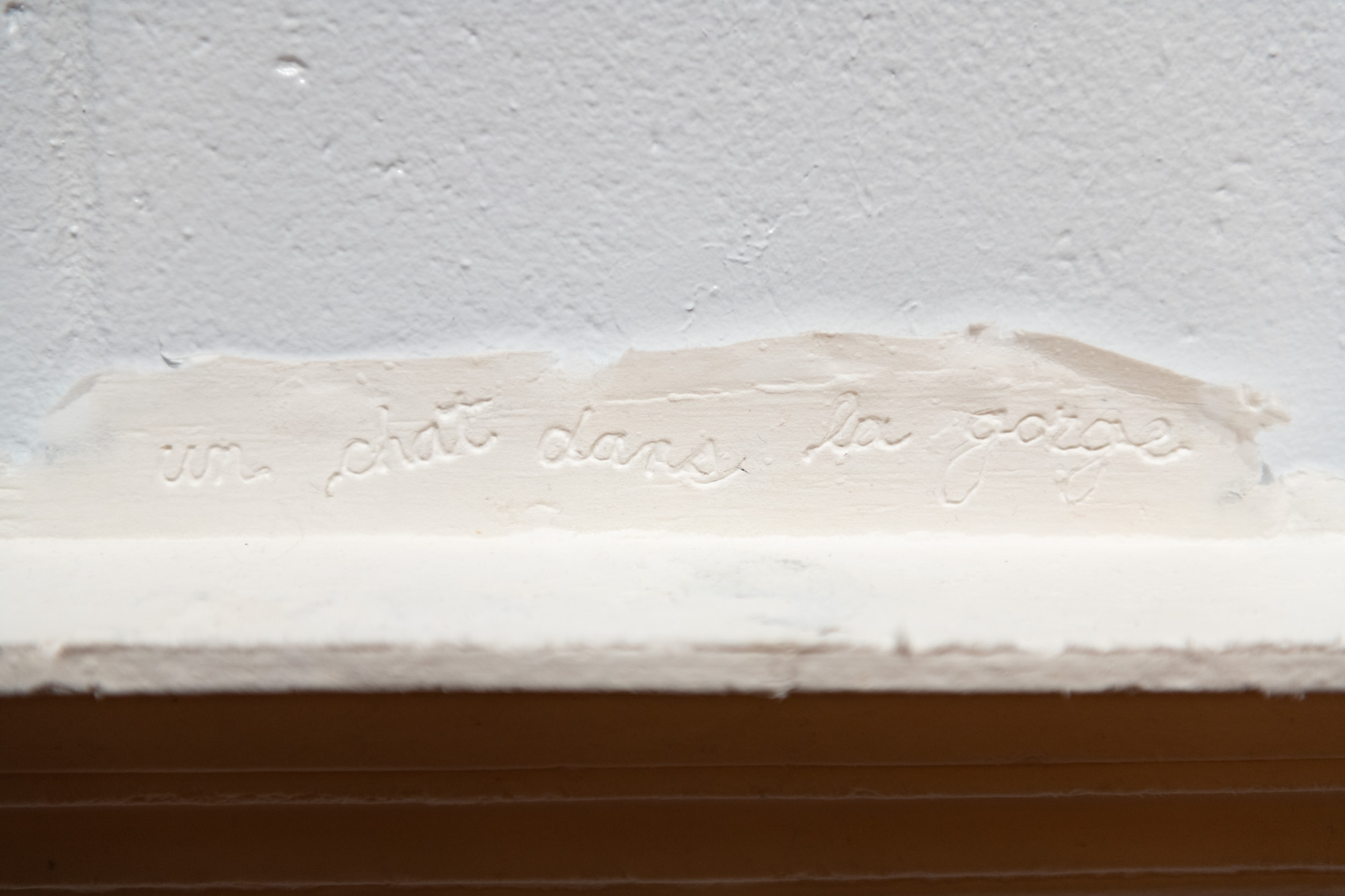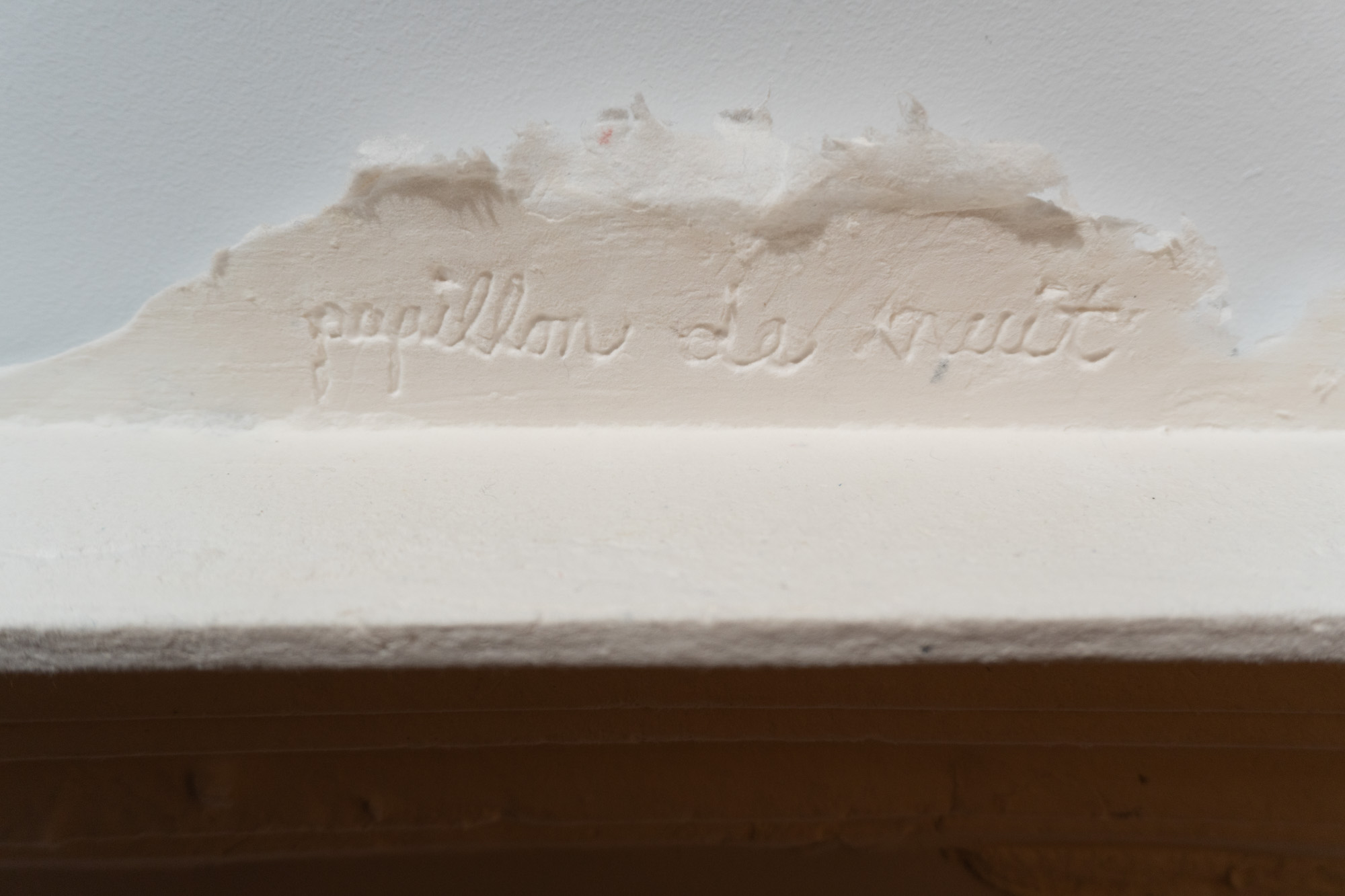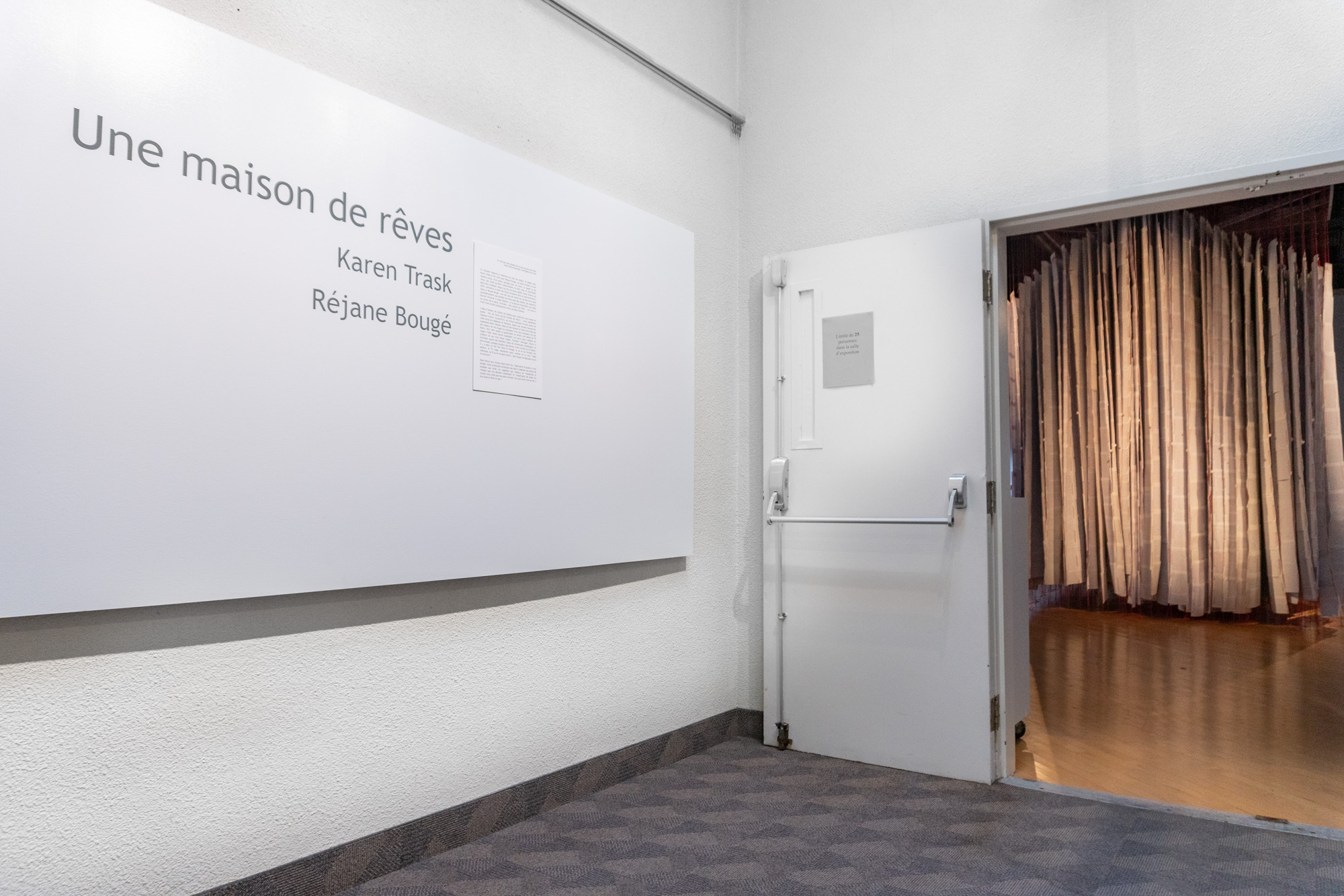 En utilisant chacune le matériau qui leur est propre, le papier pour Karen Trask et les mots pour Réjane Bougé, ces deux artistes se sont réunies autour d’un amour partagé pour ces mots, ce papier et les rêves, des rêves qu’elles collectionnent et dont elle se nourrissent dans leurs créations. Depuis qu’elle est jeune adulte, Karen Trask a, en effet, commencé à noter des rêves marquants dans un journal de bord. Quand à Réjane Bougé, cela fait plus de 30 ans qu’elle écrit aussi quotidiennement que possible ses rêves dans des cahiers, de manière à pouvoir affronter la plage blanche. La sculpture/installation qui trône au centre de la pièce, intitulée – Une maison de rêves – est aussi le fruit d’une étroite collaboration entre ces deux femmes.