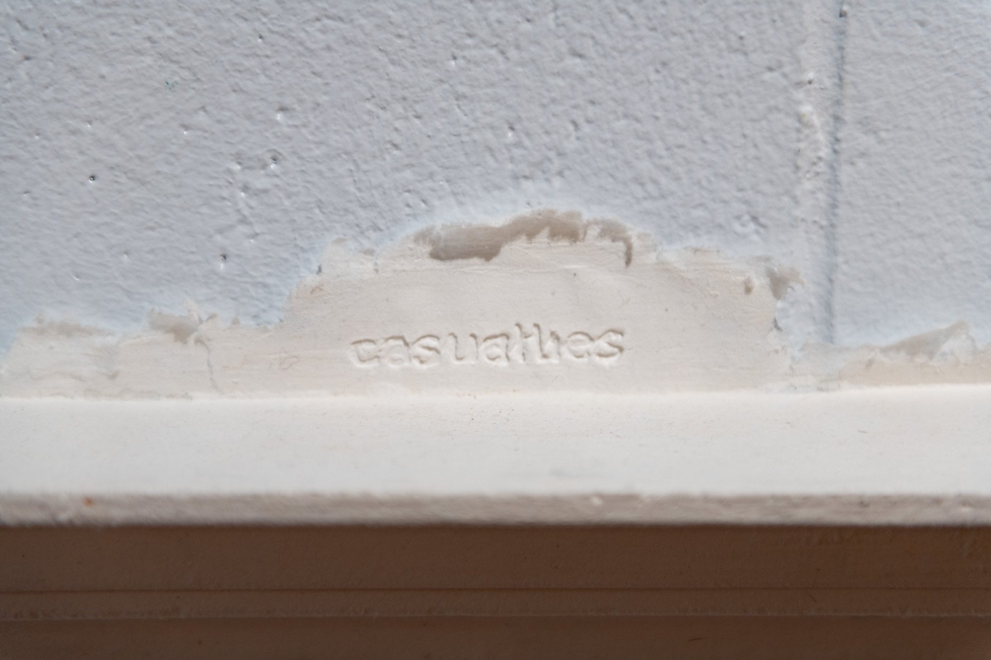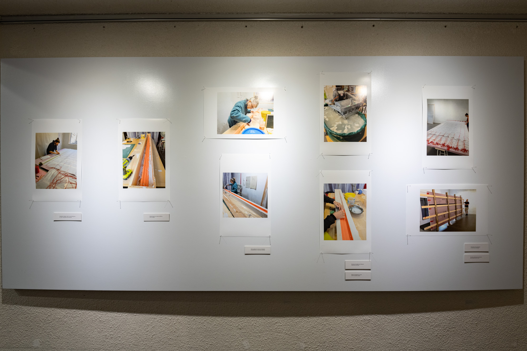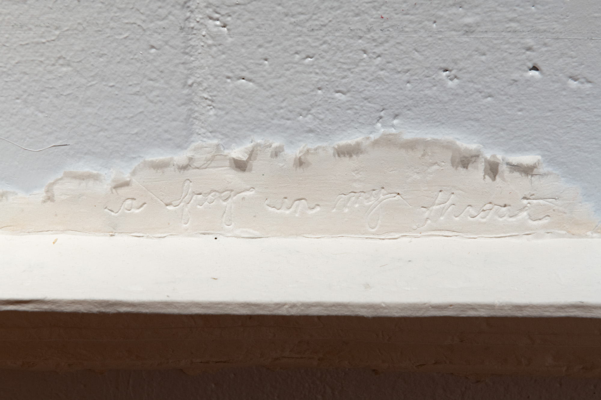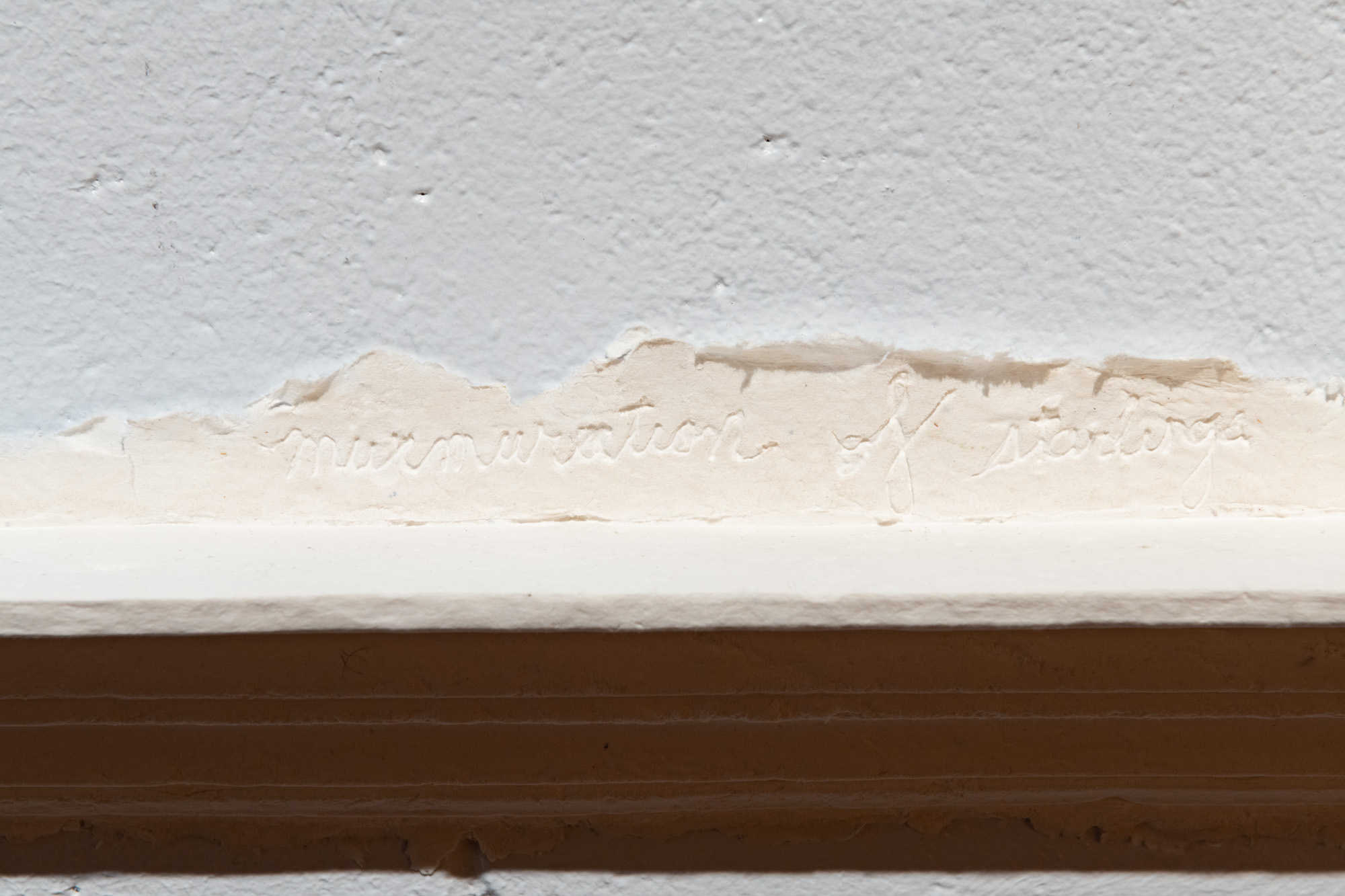 En utilisant chacune le matériau qui leur est propre, le papier pour Karen Trask et les mots pour Réjane Bougé, ces deux artistes se sont réunies autour d’un amour partagé pour ces mots, ce papier et les rêves, des rêves qu’elles collectionnent et dont elle se nourrissent dans leurs créations. Depuis qu’elle est jeune adulte, Karen Trask a, en effet, commencé à noter des rêves marquants dans un journal de bord. Quand à Réjane Bougé, cela fait plus de 30 ans qu’elle écrit aussi quotidiennement que possible ses rêves dans des cahiers, de manière à pouvoir affronter la plage blanche. La sculpture/installation qui trône au centre de la pièce, intitulée – Une maison de rêves – est aussi le fruit d’une étroite collaboration entre ces deux femmes.