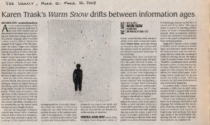 Article in the weekly about the exhibition, Warm Snow (Neige noire).