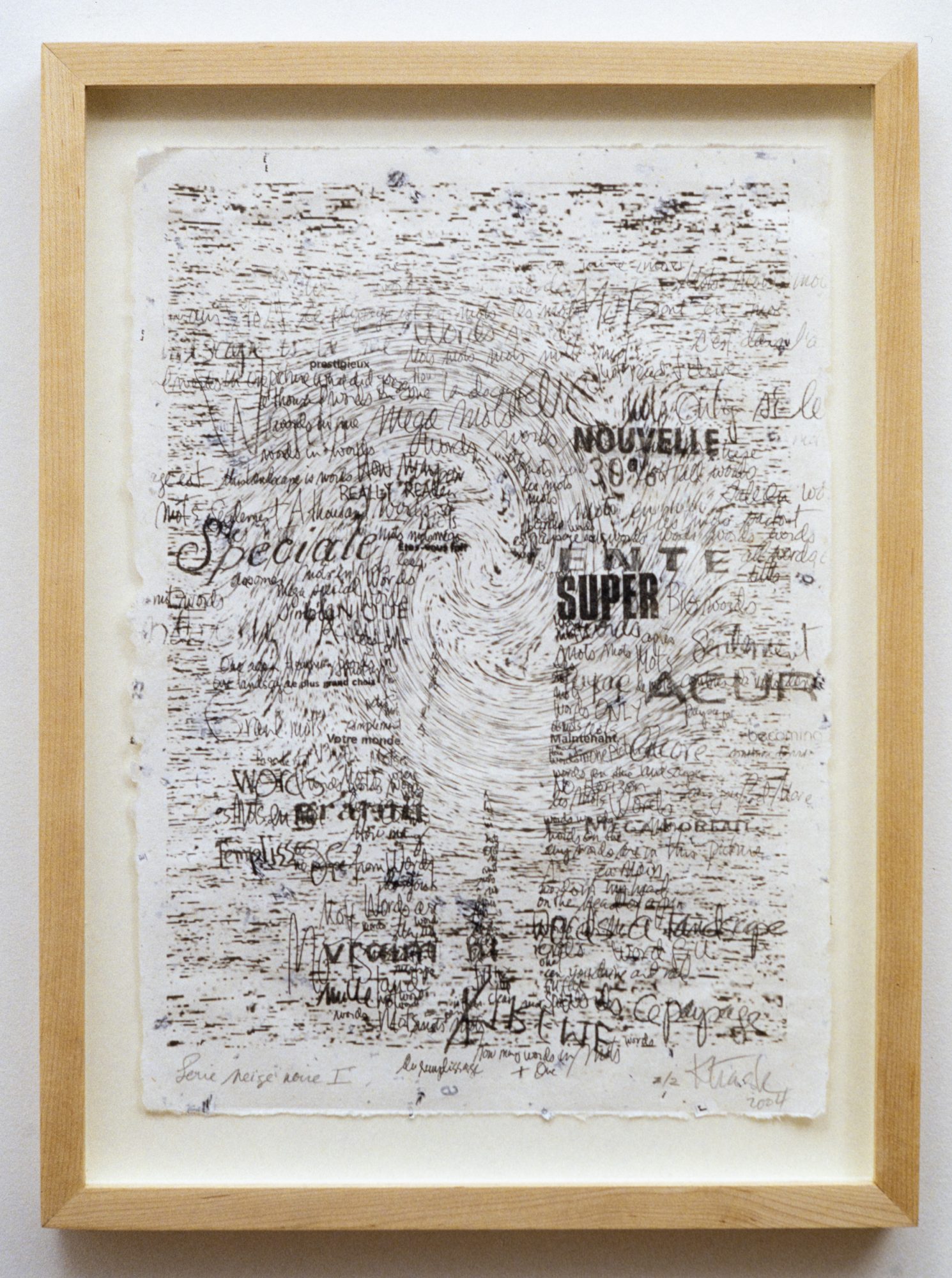 Warm Snow is a continuation of my exploration with words and ideas concerning presence and absence. As an installation of lithographs, sculpture and video each media contributes to an experience of snow as a natural winter phenomenon and as television static or white noise.
