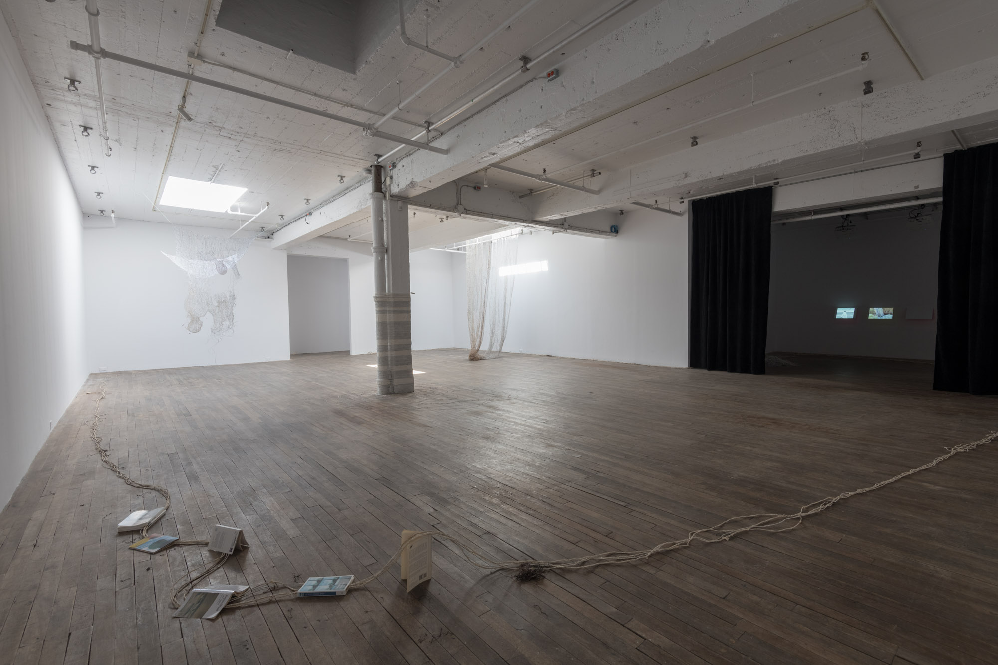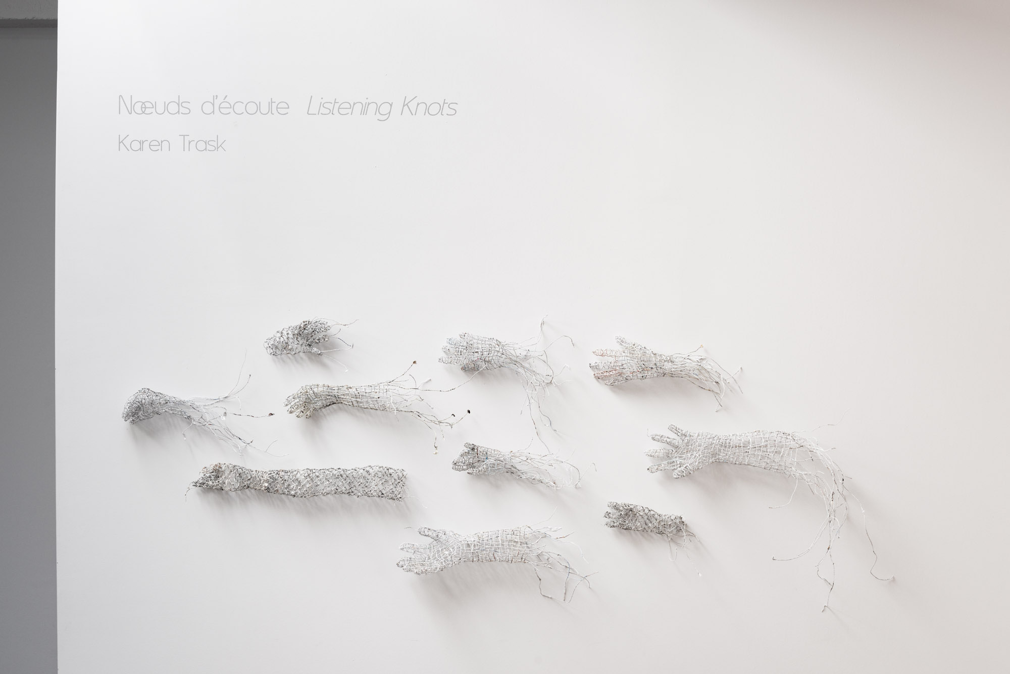 Nœuds d’écoute Listening Knots includes five text-based installations, a video projection and a continuous performance. Nœuds d’écoute Listening Knots comprend cinq installations, une projection vidéo et une performance.