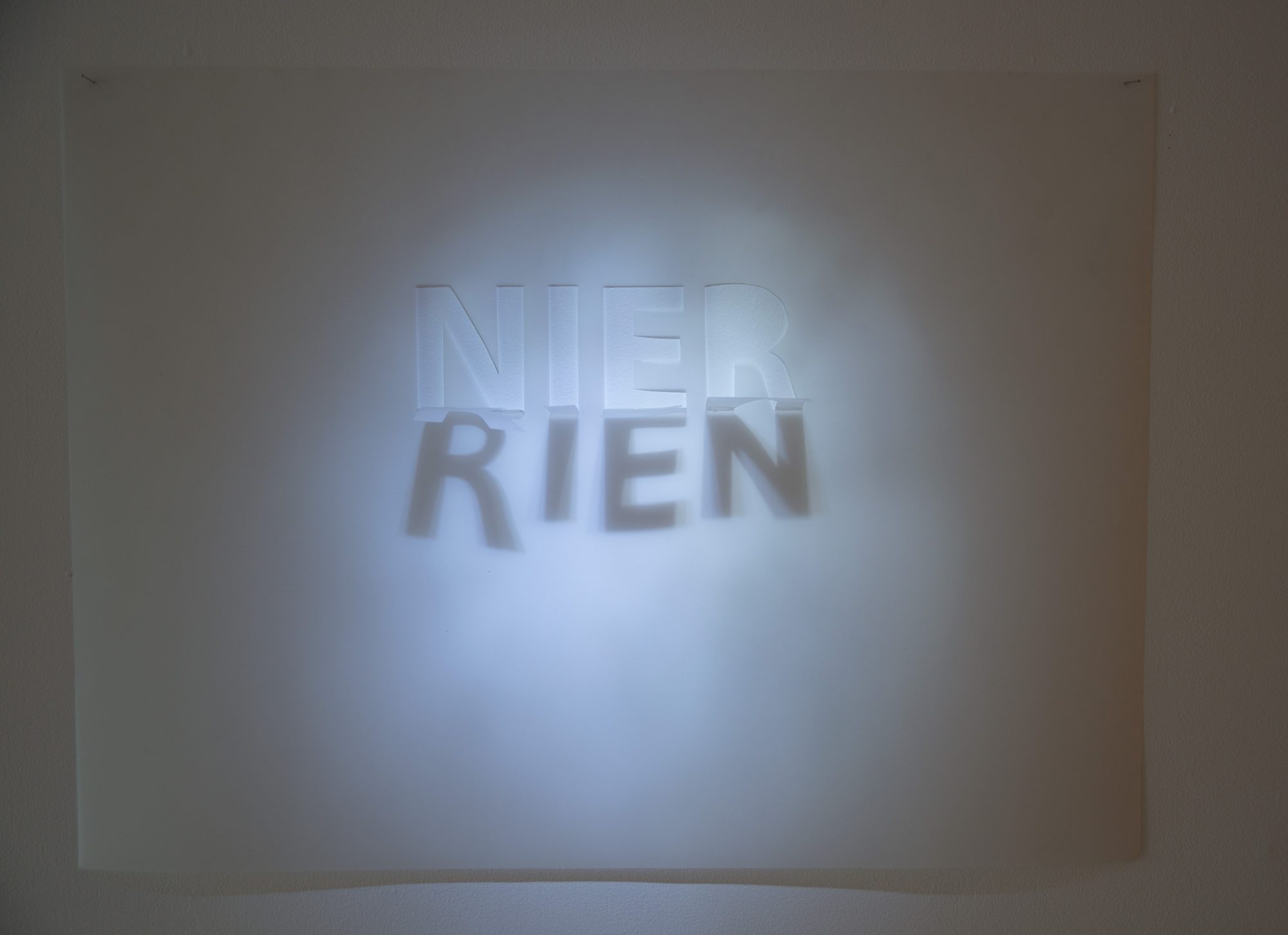 It was in Paris, in 2008, that Karen Trask sought out the work of Mallarmé – part of her residency research and an in-depth study of the concept of ‘nothing’, in all its elusiveness and even contradiction, starting with its enunciation: to think of ‘nothing’ is already to give it substance, to reverse the announced absence. By pluralising ‘nothing’, the title of the exhibition consolidates this semantic rupture, at the same time releasing its philosophical potential.