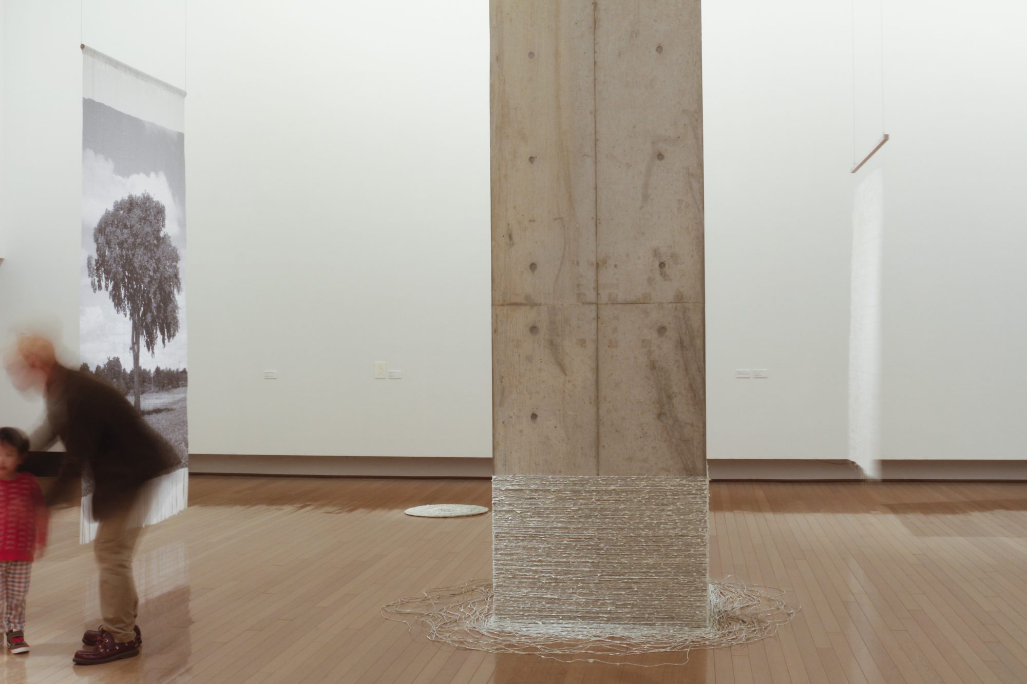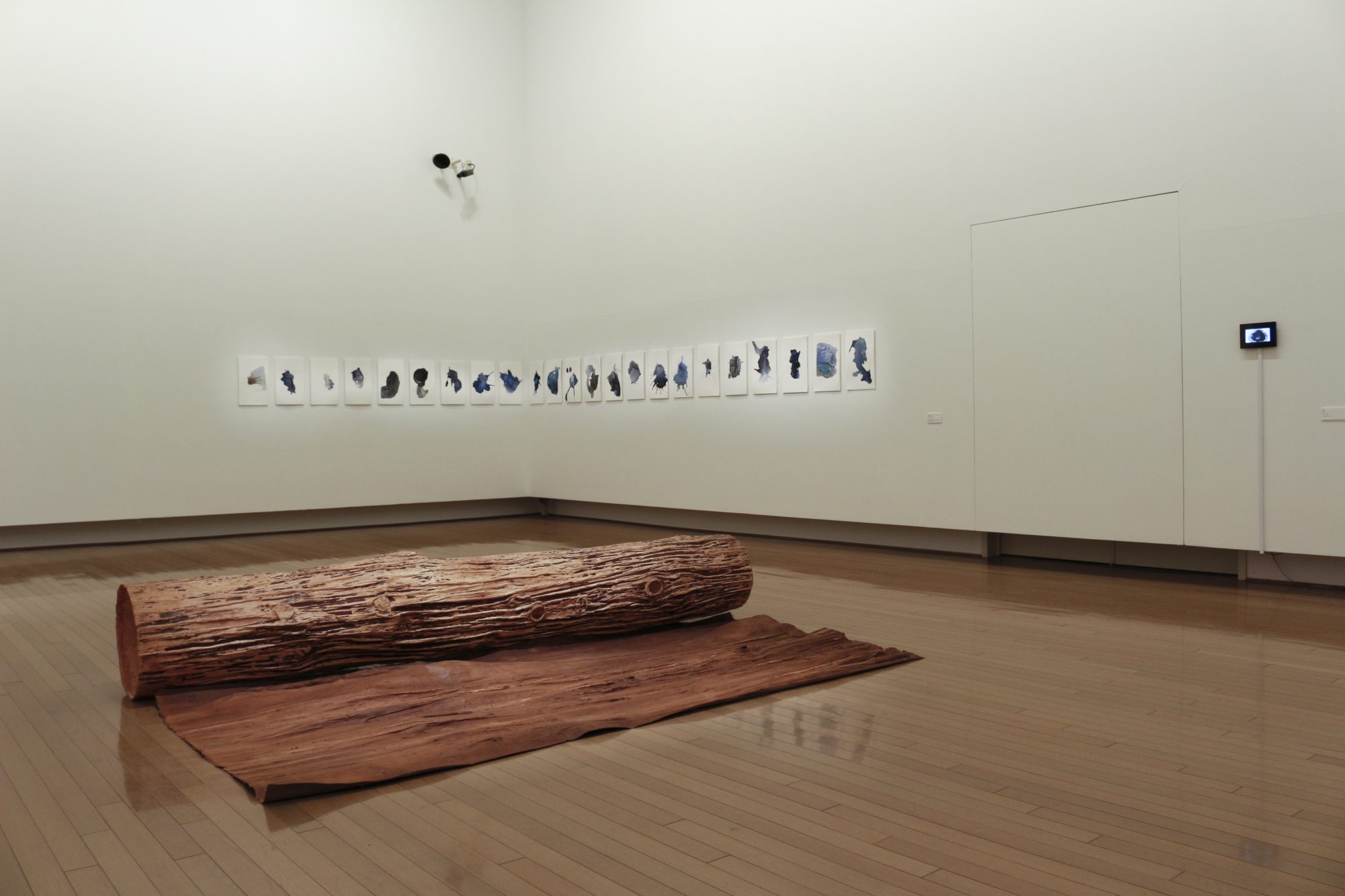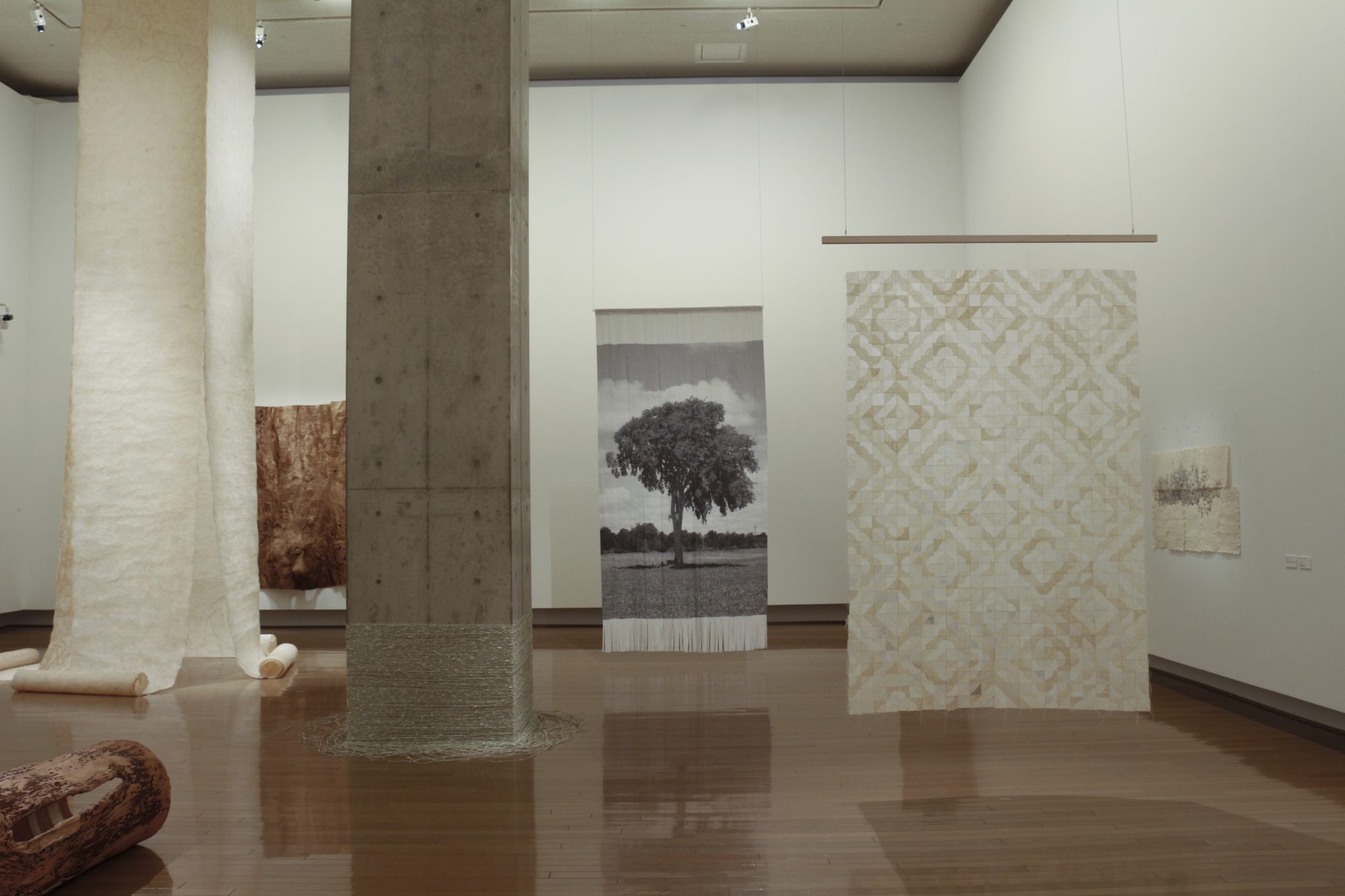 Faire et refaire met en relief le potentiel étonnamment polyvalent et constamment renouvelé du papier. Bertrand-Hamel présente une série d’aquarelles, un dessin sur papier fait main et une photographie cousue qui met en scène le travail à l’aquarelle. Trask présente des vidéos inspirées du papier ainsi que des tissages de papier imprimé et de fil de papier fabriqué à partir de pages de dictionnaires. Dans les grandes sculptures de troncs d’arbre en papier moulé de Yanai et dans ses énormes murales d’empreintes d’écorce, le temps décrit de grands arcs, oscillant du dehors au dedans et inversement. Rappelant l’origine matérielle du papier, l’arbre comme métaphore est omniprésent dans l’exposition. Les trois artistes créent des œuvres fragment par fragment, section par section. Faire et refaire évoque l’idée que la création artistique est faite de cycles d’intégration, de désintégration et de réintégration – un processus continu qui est la fois celui de la vie et de la mort.