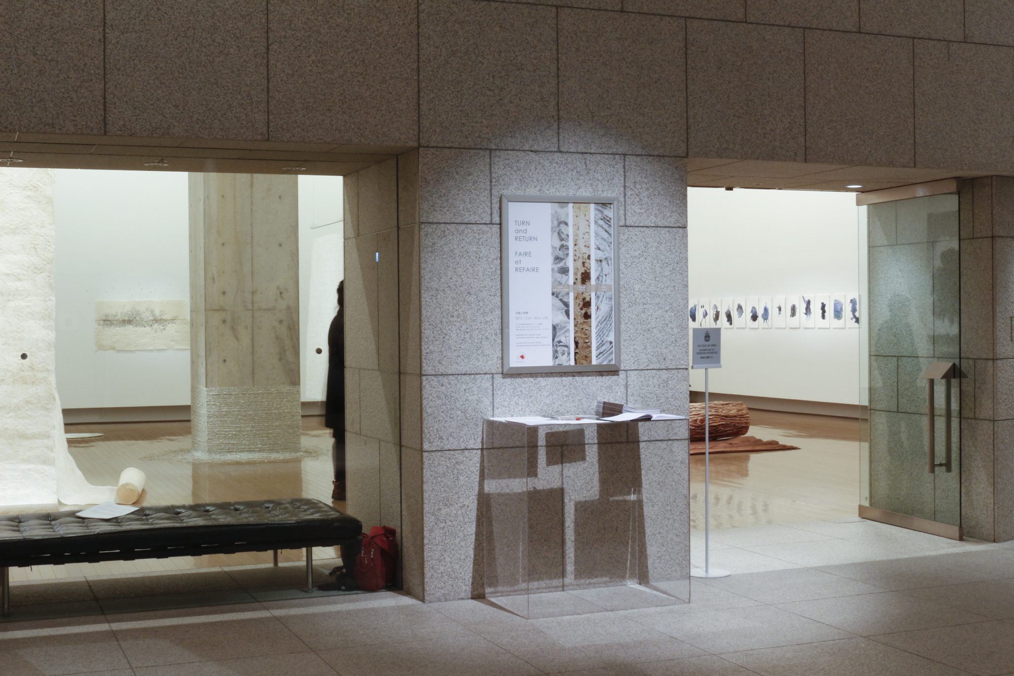 Exhibition with Sarah Bertrand-Hamel, Tsuguo Yanai and Karen Trask at the Prince Takamado Gallery, Canadian Embassy, Tokyo, Japan. November 27th 2015 – opening reception and the exhibition closed on January 28th 2016. All of the works are either made of paper or use paper as a support.